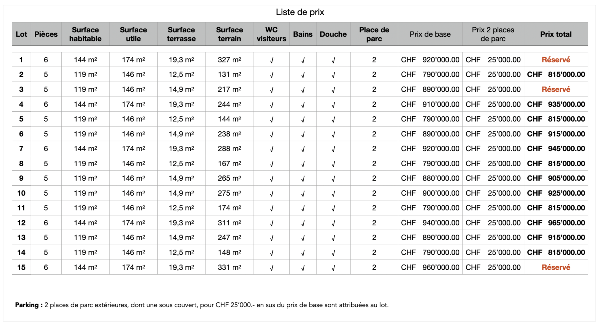 Prix parking: